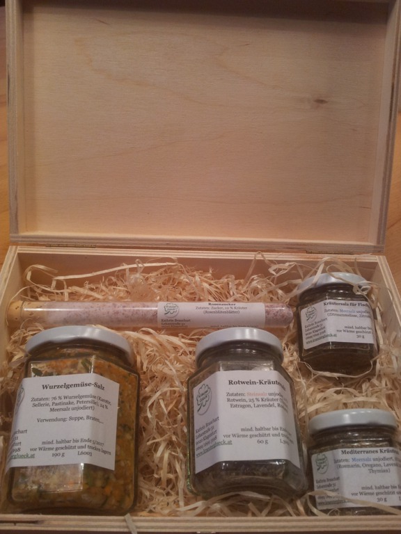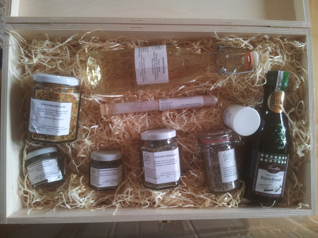Gerne verpacke ich verschiedene Produkte im Geschenkkarton oder in einer schönen Holzkiste